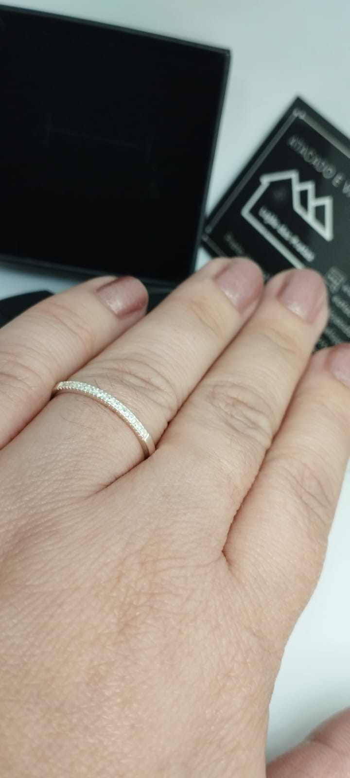 Anel com micro pedras na parte superior proporcionando delicadeza e ressaltando a aliança.