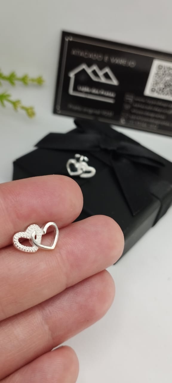 Brinco Coração Duplo em prata 925