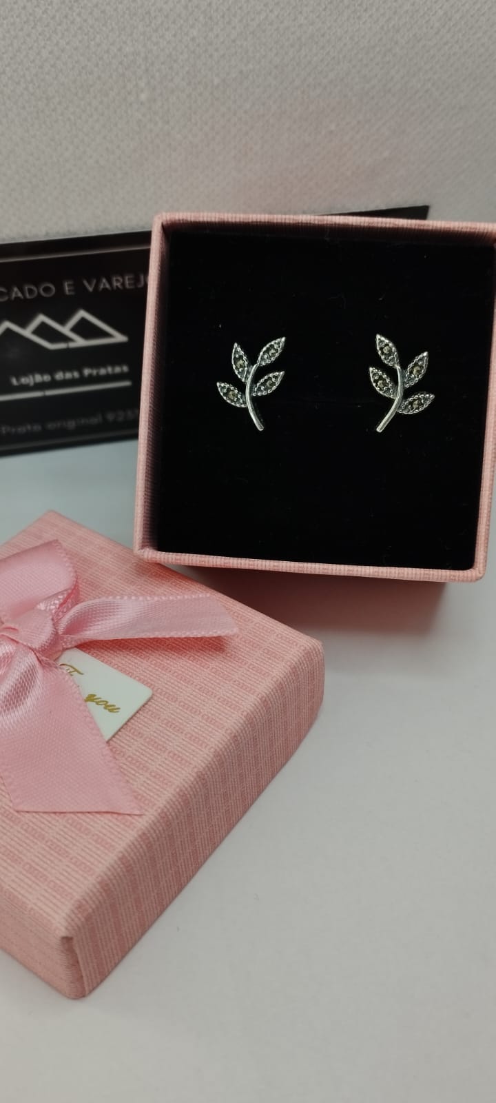 Brinco Folhas com Marcassita em prata 925