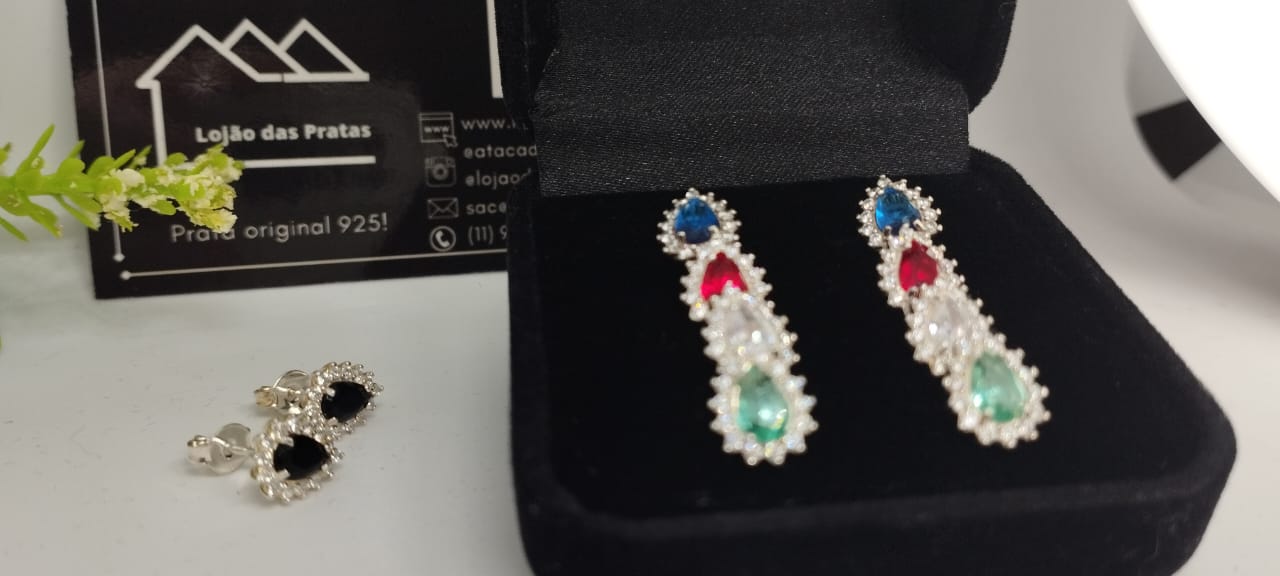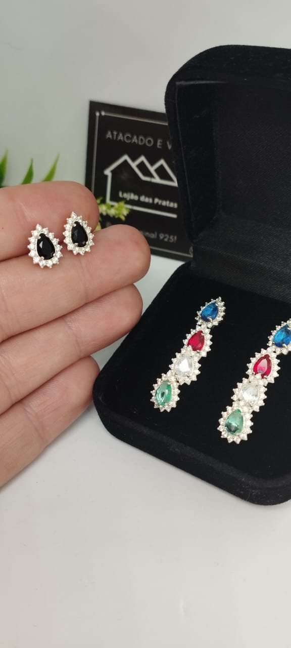 Brinco Gota com pedras em prata 925