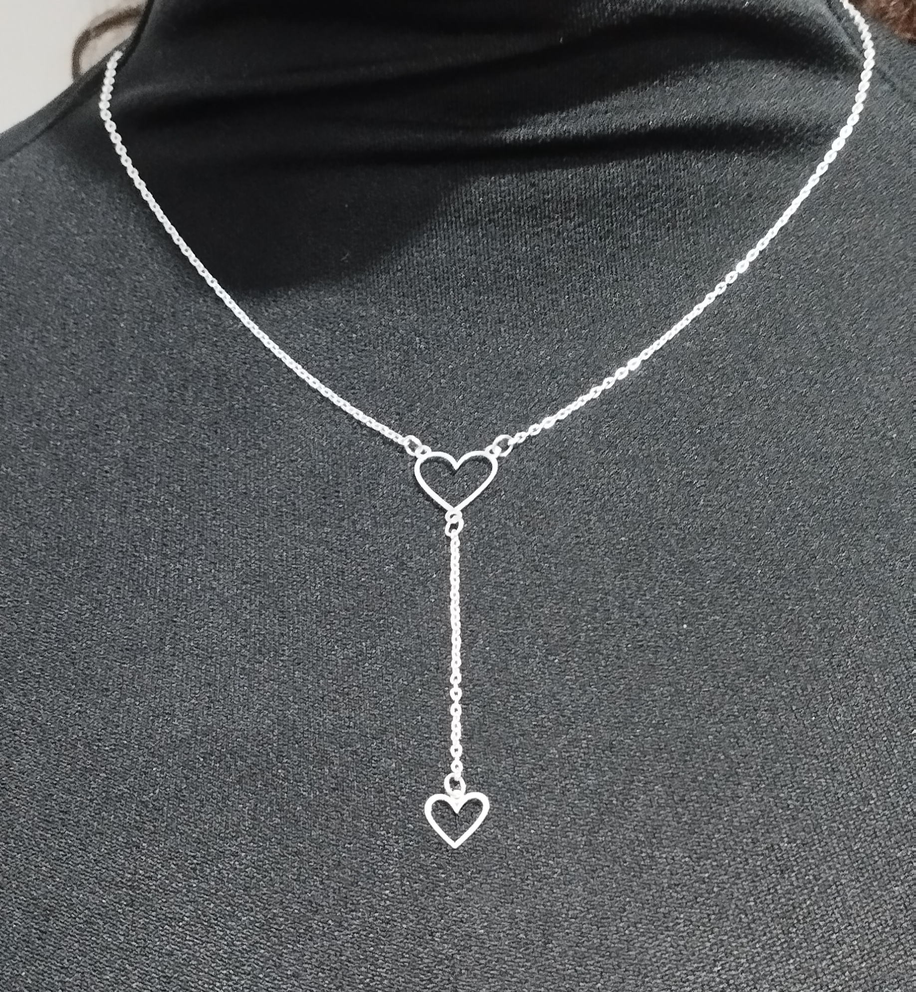 Colar Longo Duplo Coração em Prata 925 💖