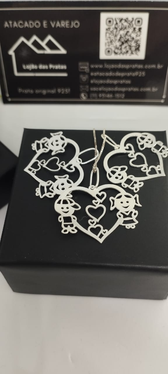 Pingente menino e menina em prata 925