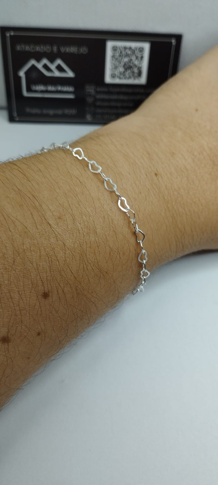 A corrente elos corações vazados, por si só já notável, entretanto, combinada com a pulseira do mesmo modelo, fica impressionante!