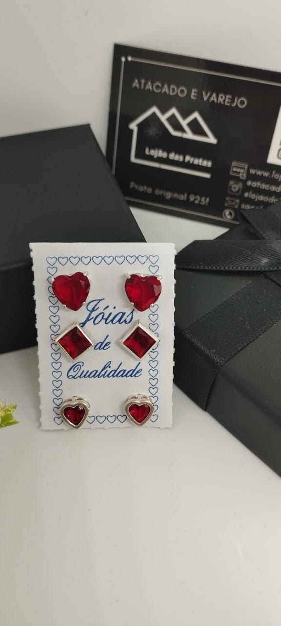 Tres modelos de brincos de prata 925 com corte à laser, proporcionando uma peça diferenciada.